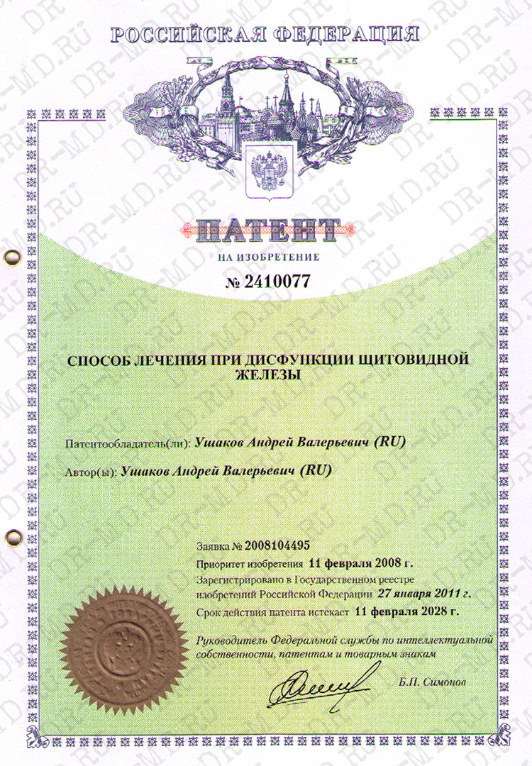 сегментарной нервной системы при заболеваниях щитовидной железы. Распространённая в мире (в т.ч. в России) Американская и ЗападноЕвропейская медицина исключает роль периферической нервной системы в заболеваниях щитовидной железы. Оказались позабыты и отвергнуты достижения Русской академической медицины (И.М. Сеченова, С.П. Боткина, Н.Е. Введенского, А.А. Ухтомского, И.П. Павлова и др.) и, в особенности, Русской эндокринологии (В.Д. Шервинского, Н.А. Шерешевского, Б.М. Могильницкого, Б.В. Алешина, Я.И. Ажипы и др.) о главном участии вегетативной нервной системы в патологии и развитии болезней щитовидной железы. Применение и совершенствование в Клинике доктора А.В Ушакова знаний Русской академической медицины позволили понимать биологический механизм и течение тиреоидной патологии и применять восстановительное лечение, а не поддерживающую помощь.