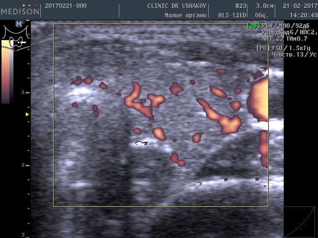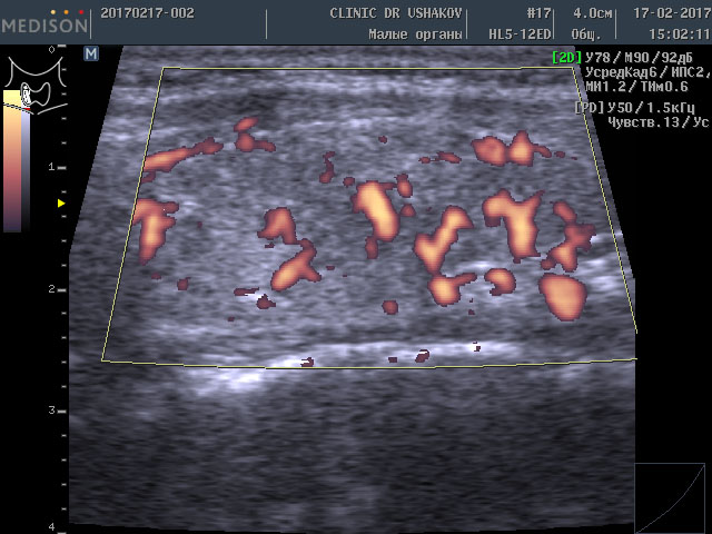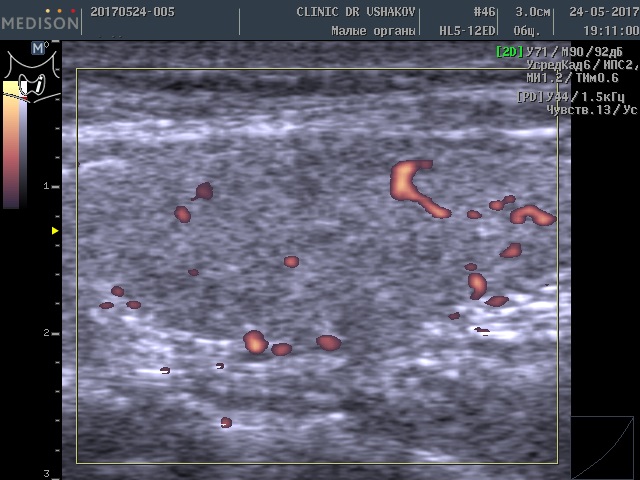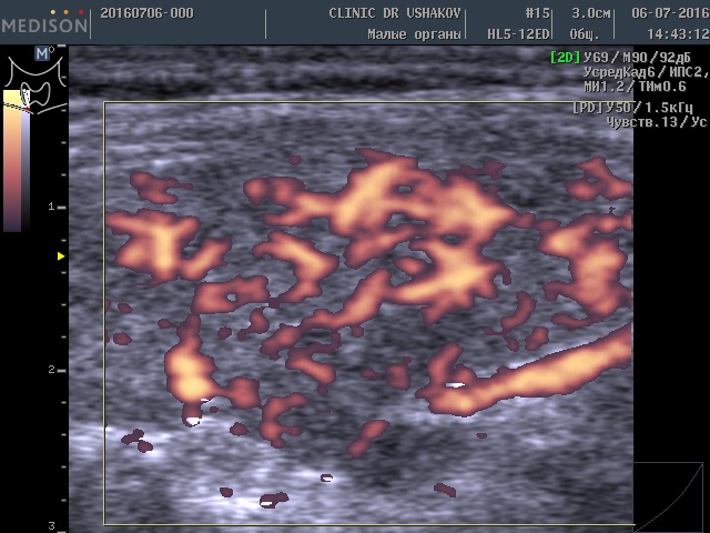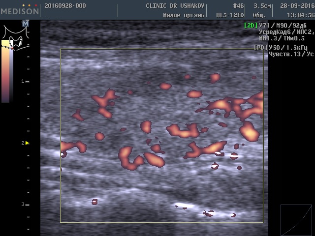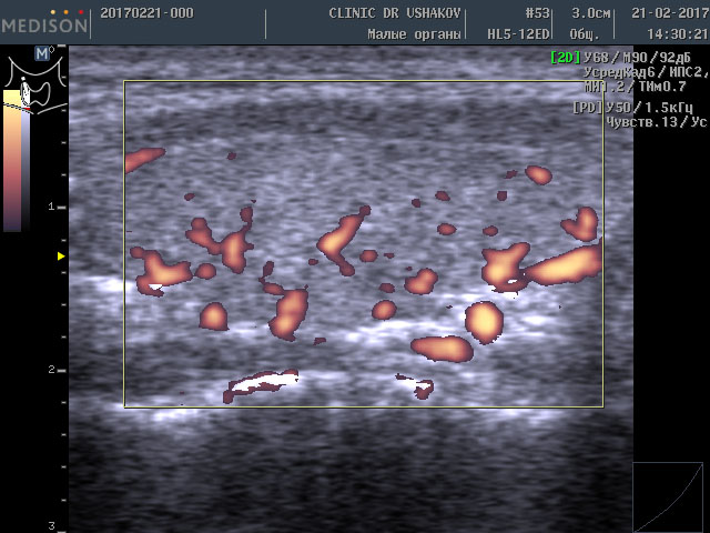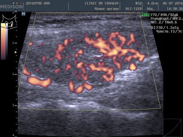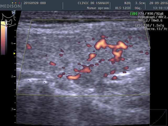 Обратите внимание на активность кровотока по данным УЗИ у этой пациентки (