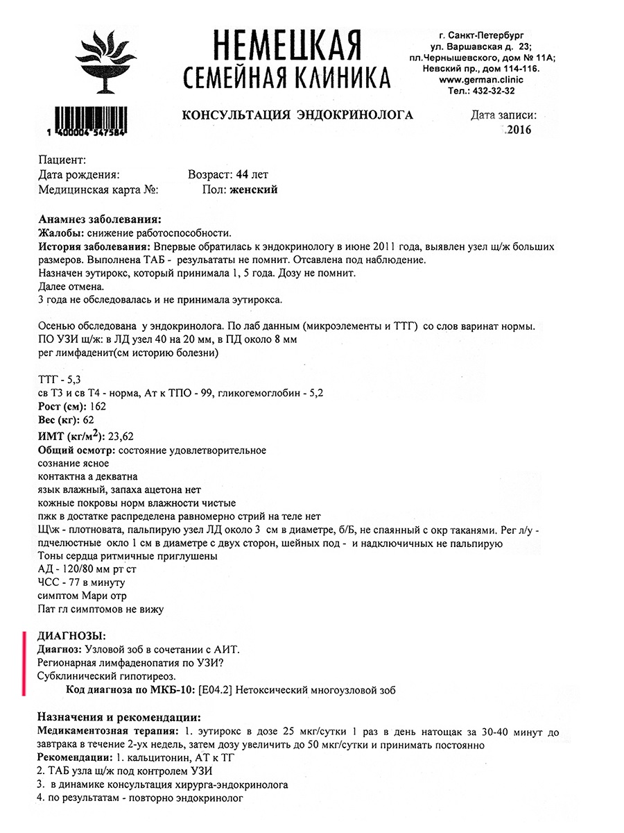 Многие наши коллеги называют «клиническим диагнозом» общее название болезни. Вероятно, по незнанию. Поэтому назначают однотипное лечение. Более того, вместо пациента «лечат ТТГ».