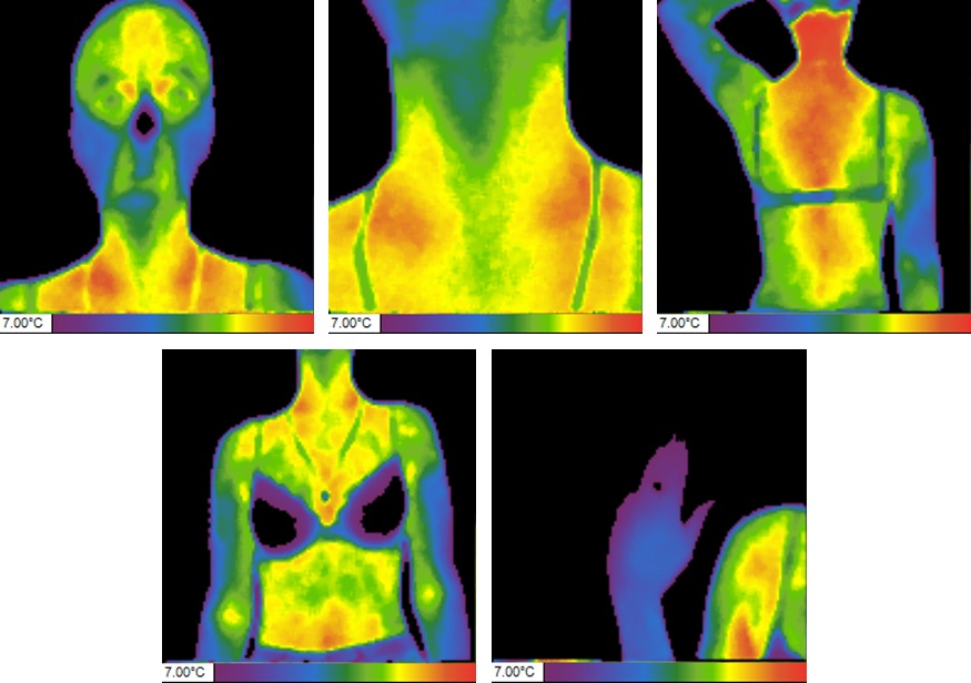 Для термографической диагностики при болезнях щитовидной железы женщины могут находится в бюстгалтере. Важно лишь побеспокоиться о том, чтобы брительки бюстгалтера были не широкими, т.е. не закрывали большую часть поверхности спины.